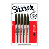 Sharpie Permanent Fine-Point Markers, Black, Pack Of 5