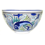 Le Souk Ceramique Deep Salad Bowl, Aqua Fish
